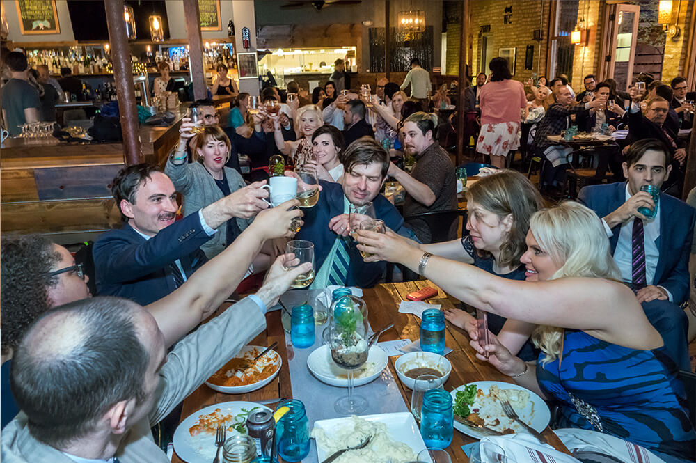 A few minutes after ordering, our server set a bag down in front of us filled with warm house-made doughnuts tossed in cinnamon and sugar. After wolfing them down in about five seconds flat, we reminded ourselves that this is our anniversary trip, so why not take a celebratory pause for a special cocktail? I ordered the F.E.W. of my Favorite Things, a delicious concoction of amaro, sweet vermouth, orange bitters and the star ingredient, FEW bourbon, which we learned was distilled just blocks away. Jack went with a house-brewed draft of the Wildcat Unfiltered Wheat, a nod to Northwestern University’s mascot. We clinked glasses and Jack toasted to a fun and flavorful weekend.